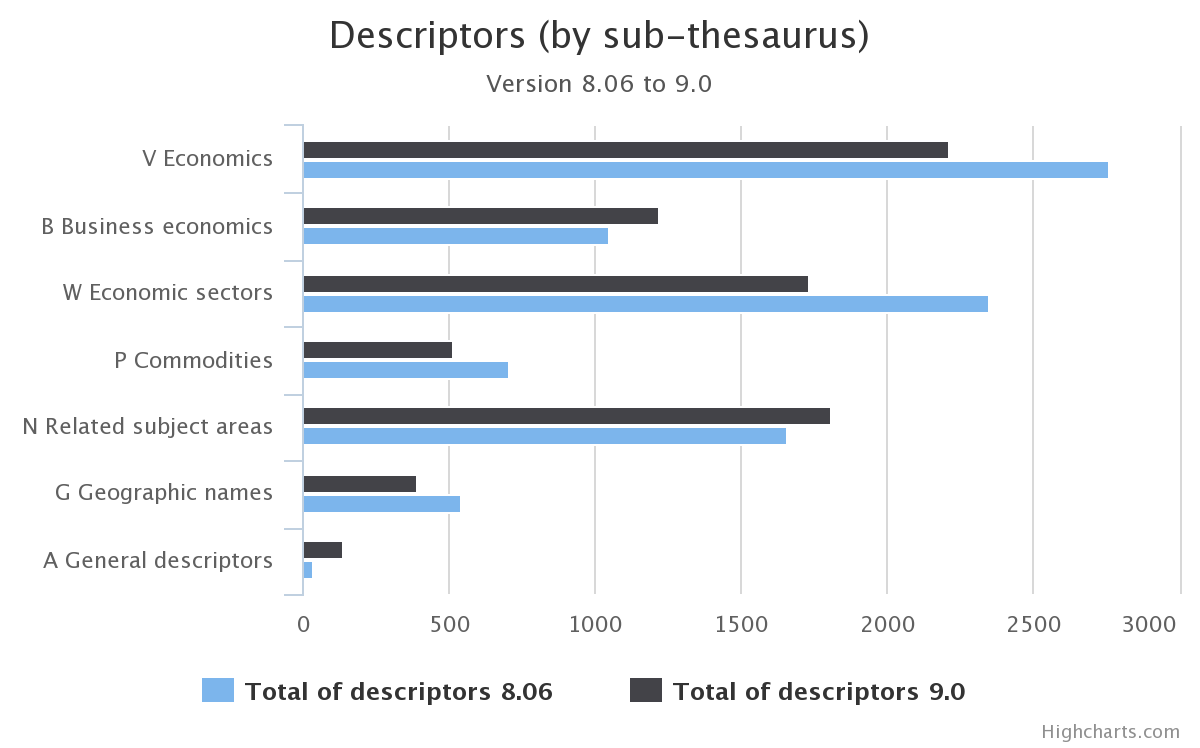 Figure: Total number of descriptors (by sub-thesaurus)